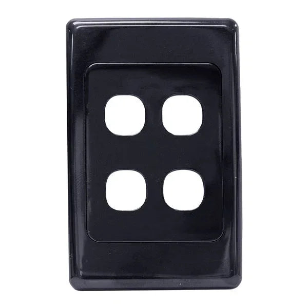 AMDEX Switch Plate ONLY. 4 Gang Wall Face Plate (Accepts Clipsal Style Mechs). Black