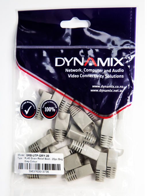 DYNAMIX GREY RJ45 Strain Relief Boot (6.0mm Outside Diameter). 20pk bag.