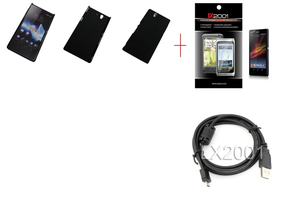 Sony Xperia Z Rubber Hard Case Cover + Screen Protector + USB PC Cable NOT leather crystal silicon case car charger car kit bluetooth - Please check our other listings for these!