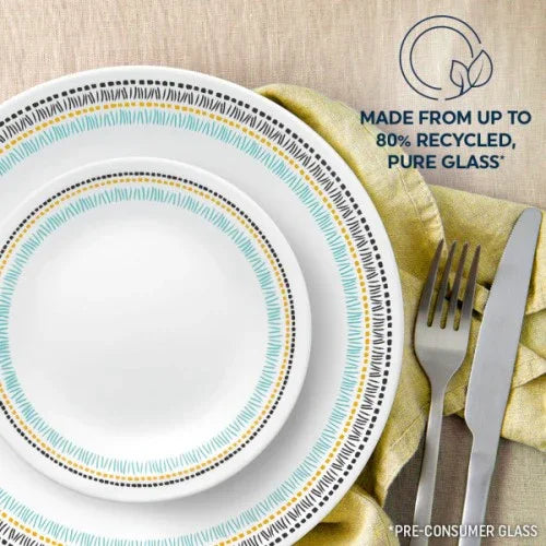 Corelle Paloma 12pc Dinnerware Plate Bowl Set Concentric bands of black, aqua and goldenrod create a pattern that's both subtle and bold. With th...