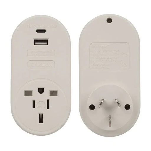 JACKSON Outbound Travel Adaptor with USB-A/C. Converts 2-Pin NZ/AUS Plugs for Use in More than 150 Countries.