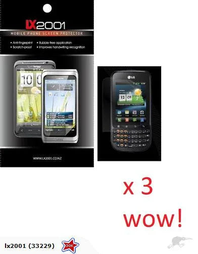 View full detailsThis auction is for:3 x LCD Screen Protector for LG Optimus Pro C660 (incl cleaning cloth)Product Overview:- Easy to install Screen Protector.- No ...