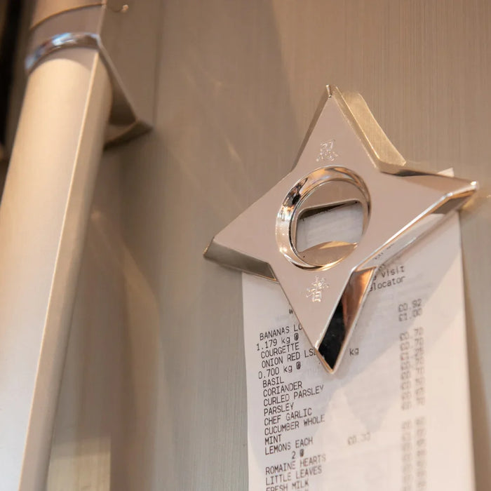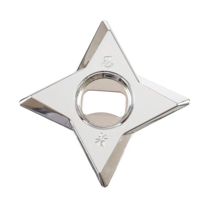 A silver magnetic bottle opener in the shape of a “Shuriken” Ninja Star. Keep it on the fridge when you are not stealthily whipping off bottle caps like a Ninja Master!