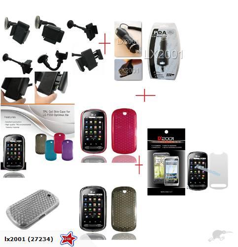 LG P350 Aqua Optimus Me gel crystal plastic case + screen protector + car charger + kit holder NOT leather Case car bluetooth