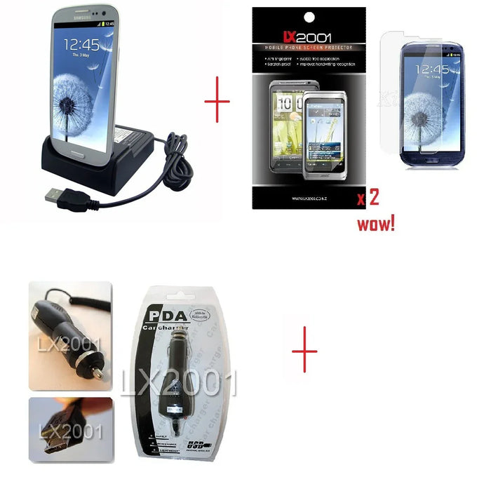 USB Cradle for Samsung Galaxy S3 SIII I9300 S 3 S III + Screen Protector + Car Charger NOT Case Silicon Crystal Leather Diamond Case Car Kit Bluetooth