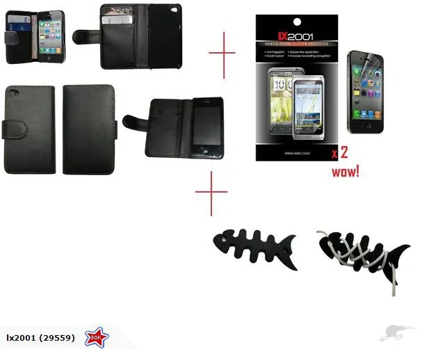 iPhone 4 4G Black White 16GB 32GB 64GB leather Wallet Book Style + Screen Protector + Fish Wrap NOT Silicon Plastic Case Car kit Holder Charger Bluetooth