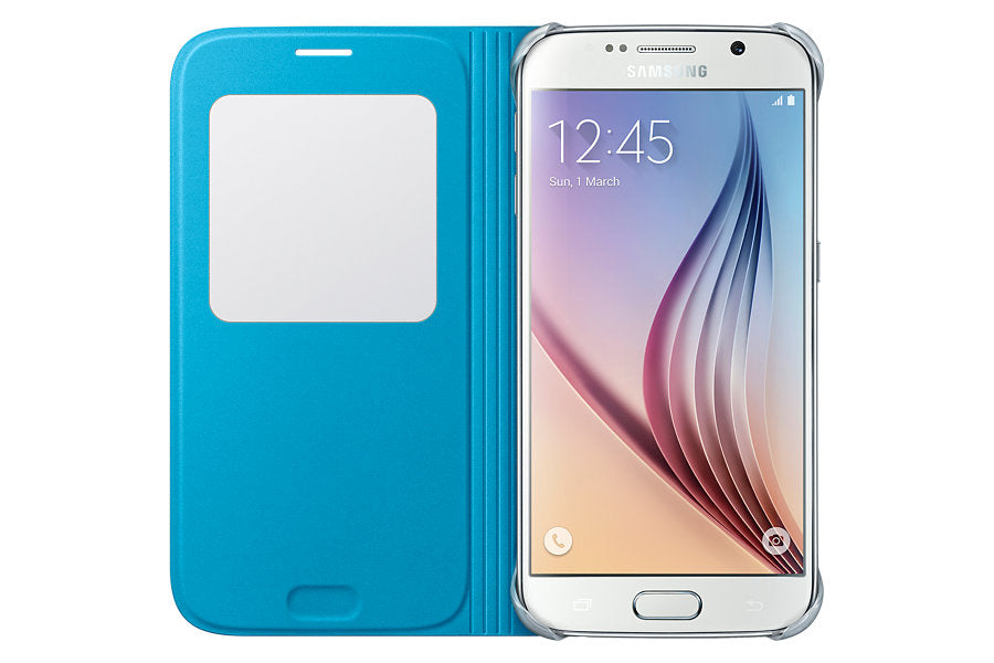 1 x Original Genuine Samsung S6 Vegan S View Wallet Case Cover - Choose from: Blue; or White (no Blue / Black; or Gold sorry)